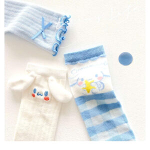 Tất thời trang in họa tiết hoạt hình dễ thương, tông xanh dương mát mắt.